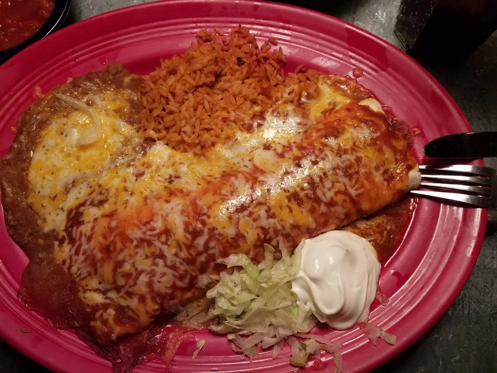 Joe is gluten free so he always orders the Sweet Pork Enchiladas. He gets three enchiladas with rice and beans on the side. Before he was diagnosed with celiac disease, he’d get the Sweet Pork Burritos and loved those as well. I remember after the first time we ate there, he told me that he was still dreaming about that pork and couldn’t wait to get back.
