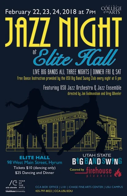 Free dance instruction provided by the USU Big Band Swing Club each night at 6pm. Dance starts at 7pm. Click here to purchase tickets. Click here for additional information.
